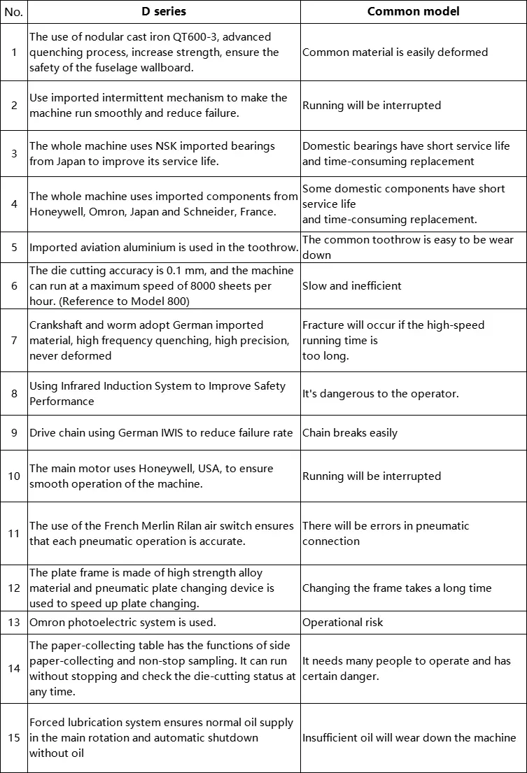 * 고급 Honeywell 메인 모터 사용 (선택적 구성), 다이 절단 속도는 시간당 7500 장에 도달 할 수 있습니다.